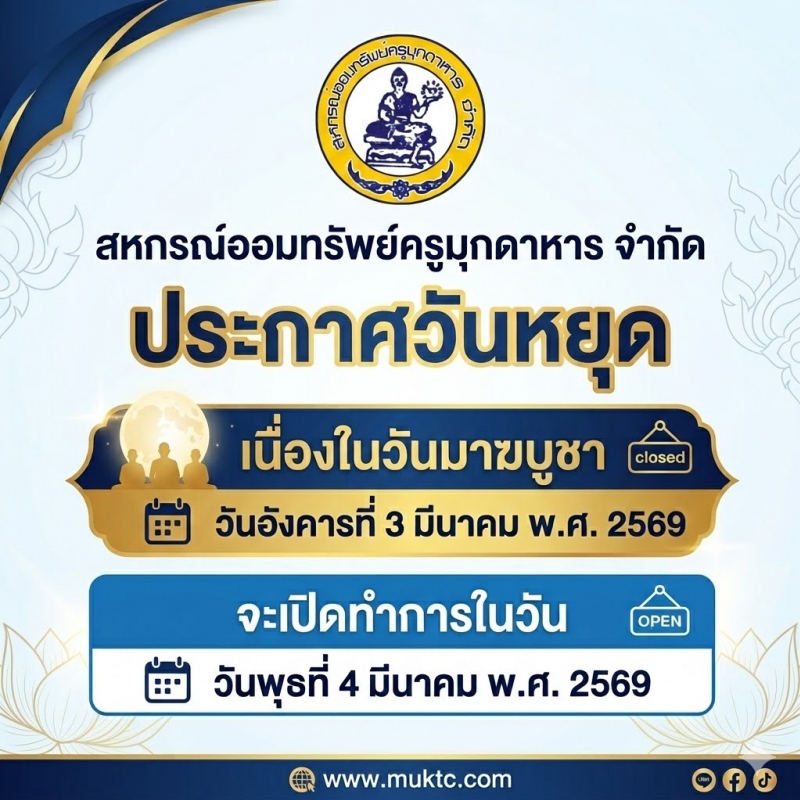 การรับสมัครสมาชิก (กรณีพิเศษ) สมาคมฌาปนกิจสงเคราะห์สมาชิกสหกรณ์ออมทรัพย์ครูมุกดาหาร จำกัด date_range2 มิ.ย. 2564