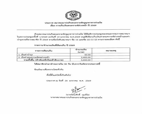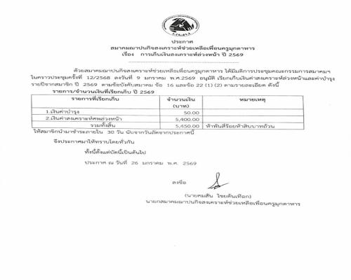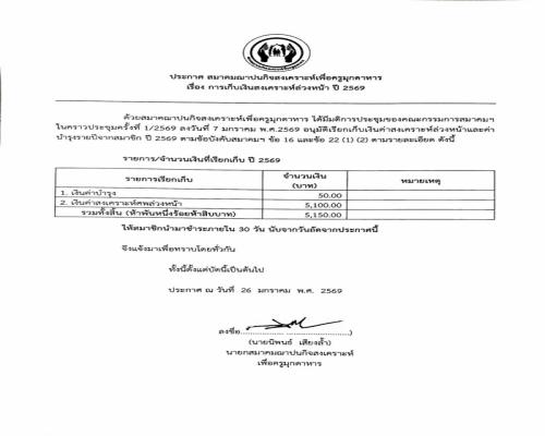 ประกาศ สมาคมฌาปนกิจสงเคราะห์ครูมุกดาหารร่วมใจ เรื่อง การเก็บเงินสงเคราะห์ล่วงหน้า ปี 2569