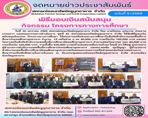โพสต์โดย สหกรณ์ออมทรัพย์ครูมุกดาหาร จำกัด