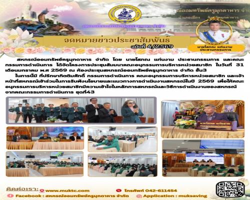 ประกาศสหกรณ์ออมทรัพย์ครูมุกดาหาร จำกัด เรื่อง หลักเกณฑ์การระดมเงินฝาก "ปี 2569 ปีแห่งการระดมเงินฝาก"