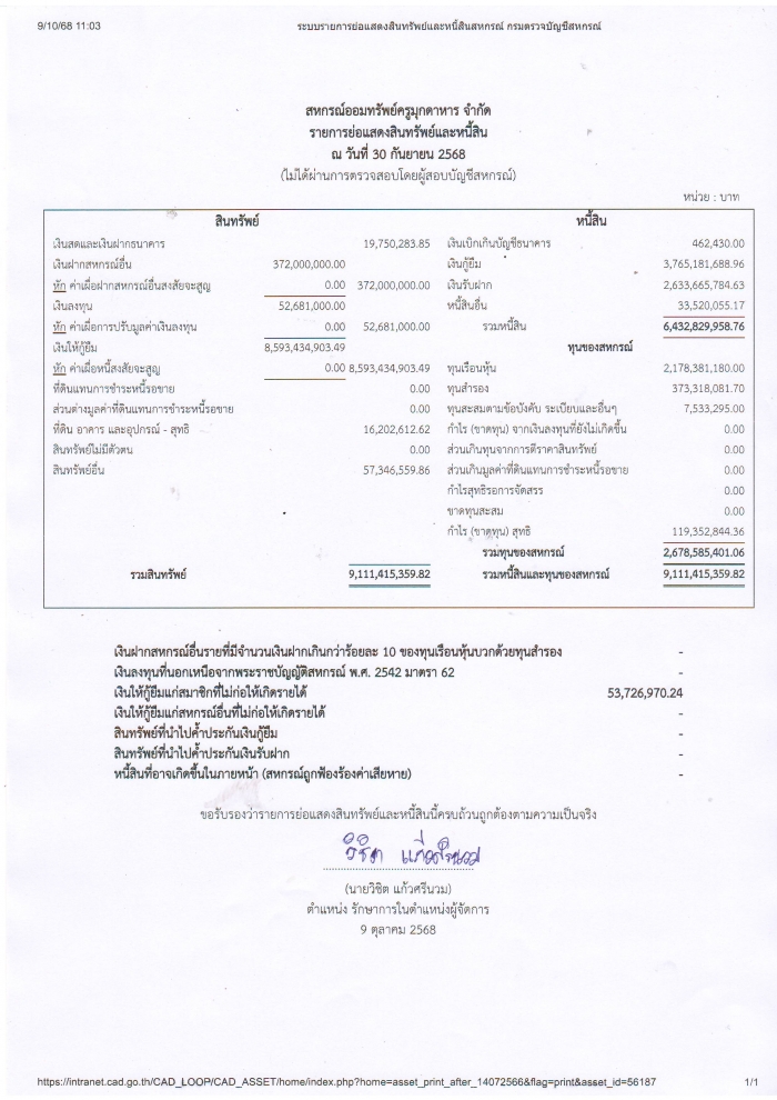 รายกการสินทัพย์อย่างย่อเดือน กย.68