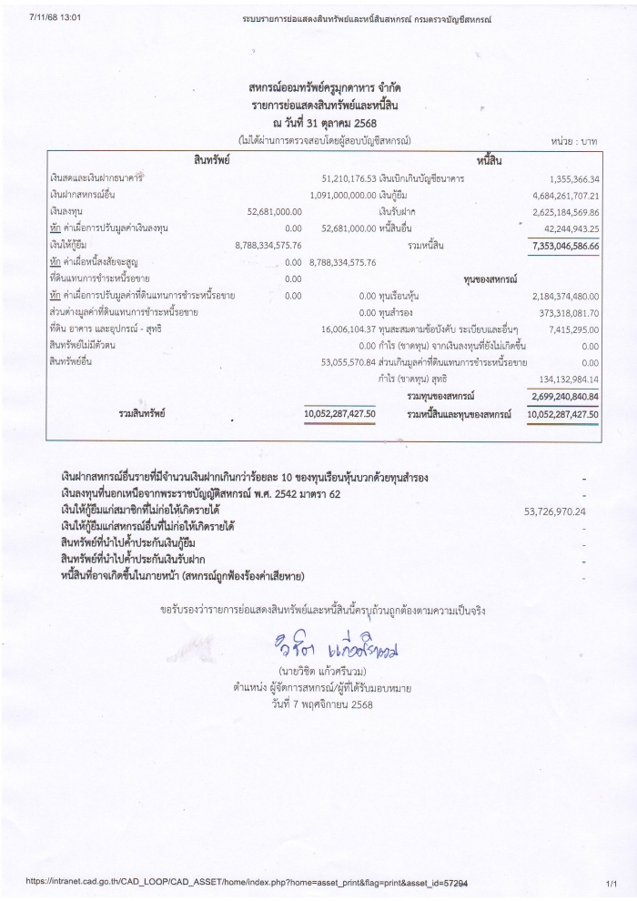 รายการสินทรัพย์อย่างย่อเดือนตค.68