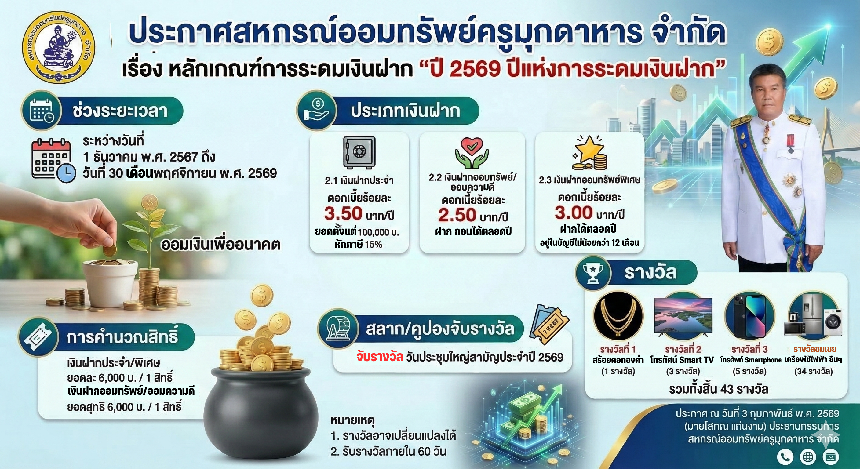 ประกาศสหกรณ์ออมทรัพย์ครูมุกดาหาร จำกัด เรื่อง หลักเกณฑ์การระดมเงินฝาก "ปี 2569 ปีแห่งการระดมเงินฝาก"