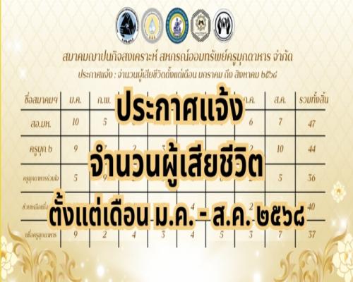 สมาคมฌาปนกิจสงเคราะห์ สหกรณ์ออมทรัพย์ครูมุกดาหาร จำกัด ประกาศแจ้ง จำนวนผู้เสียชีวิตตั้งแต่เดือน มกราคม ถึง สิงหาคม ๒๕๖๘
