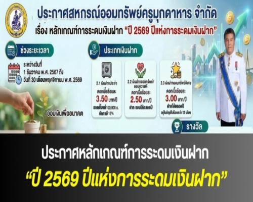 ประกาศสหกรณ์ออมทรัพย์ครูมุกดาหาร จำกัด เรื่อง หลักเกณฑ์การระดมเงินฝาก "ปี 2569 ปีแห่งการระดมเงินฝาก"