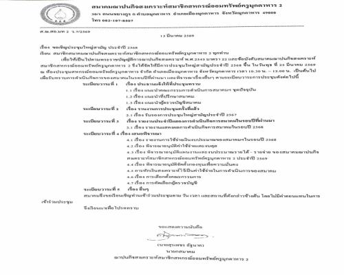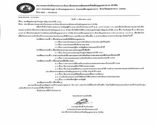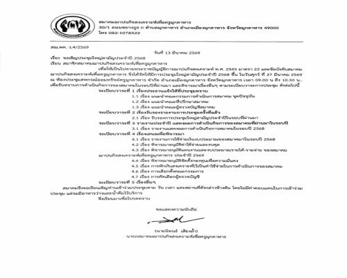 ขอเชิญประชุมใหญ่สามัญ ประจำปี 2568 สมาชิกสมาคมฌาปนกิจสงเคราะห์สมาชิกสหกรณ์ออมทรัพย์ครูมุกคาหาร จำกัด
