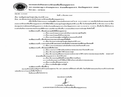 ขอเชิญประชุมใหญ่สามัญประจำปี 2568 สมาชิกสมาคมฌาปนกิจสงเคราะห์เพื่อครูมุกดาหาร