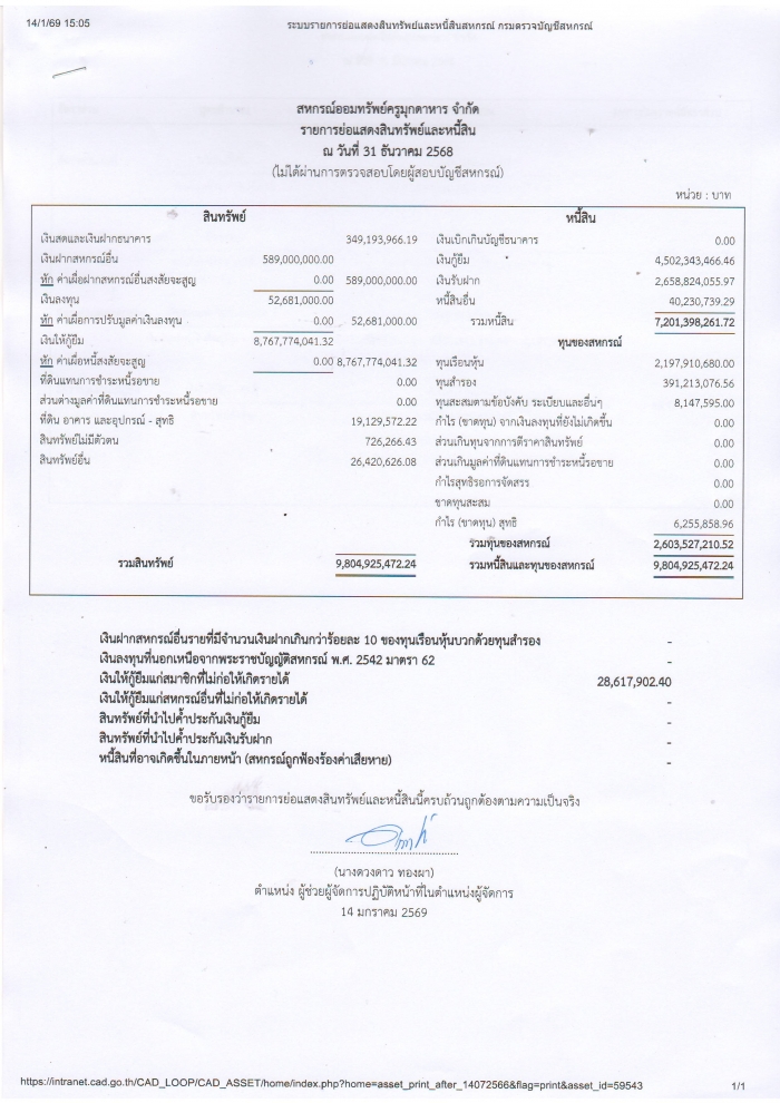 สินทรัพย์อย่างย่อเดือน ธค.68